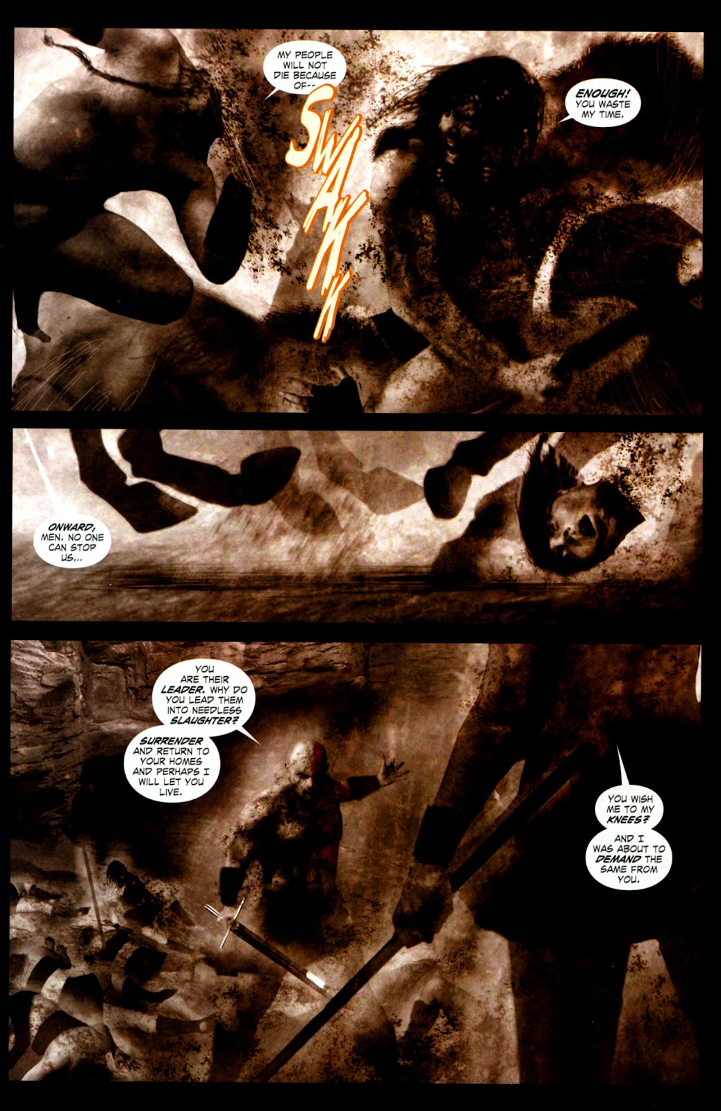 -Mientras se enfrentaba con un guerrero que se mantuvo escondido entre las sombras, lo dejaría fuera de combate apuñalándolo en un zona vital de su cuerpo y al lanzarlo hacia a las fueras de aquel templo solo para darse cuenta de que se trataba de un Guerrero Espartano con el que se había encontrado al inicio de su aventura, siendo alguien que había sobrevivido a la masacre de los demás Espartanos realizada por Zeus.